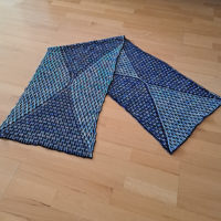 Dieses Muster ist für einen schönen, breiten Schal und verwendet einen Stich, bei dem sich zwei Brk-Spalten kreuzen, um ein Muster aus Xs zu erzeugen.