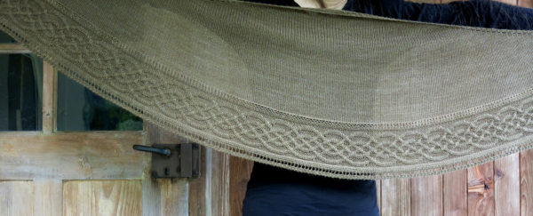 Celtic Myths ist ein halbrundes Tuch mit einer wunderschönen, keltischen Zopfbordüre nach der Strickanleitung Celtic Myths von Asita Krebs / sidispinnt. Das Tuch beginnt von der Mitte oben, danach wird die Bordüre von der Seite her an den Tuchkörper angestrickt. Nach dem Spannen ist das Tuch ganze 180cm lang und 50cm tief.Das Tuch ist individuell anpassbar an Grösse oder sogar Garnstärke. Achtung das Maschenbild sollte nicht zu locker sein, da der Zopf sonst etwas auseinanderfällt.Das Verhältniss vom Garnverbrauch des Tuchkörpers und der Bordüre ist etwa 1;1.2 (90g (270m) für den Körper, 110g (330m) für die Bordüre beim abgebildeten Tuch) Das heisst die Tuchbordüre braucht etwas mehr Garn als der Tuchkörper.