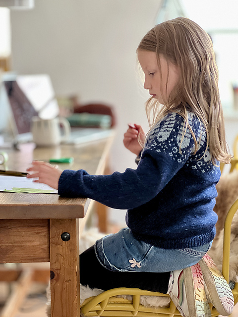 Fischers Fritz ziert eine fröhliche zweifarbige Passe. Der Pullover wird nahtlos von oben nach unten gestrickt, sodass Körper- und Ärmellänge während des Strickens angepasst werden können und es auch später einfach ist, sowohl den Körper als auch die Ärmel zu verlängern, falls die Kleinen schneller wachsen als man stricken kann 😉 Begonnen wird mit einem provisorischen Maschenanschlag für den Halsausschnitt, so lässt sich die Öffnung ganz einfach an den Kopfumfang des Kindes anpassen.