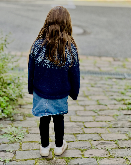 | Maschenprobe | 24 M x 35 Rh = 10 x 10 cm, glatt rechts, mit der dickeren Nadel nach Waschen und Spannen. 24 M x 31 Rh = 10 x 10 cm, im farbigen Einstrickmuster, |