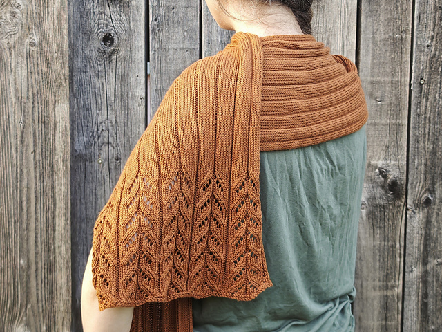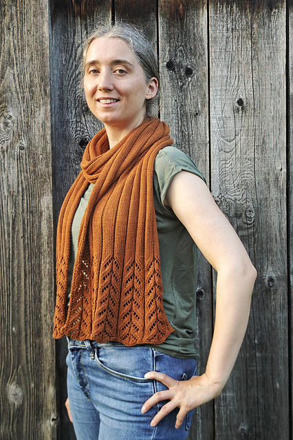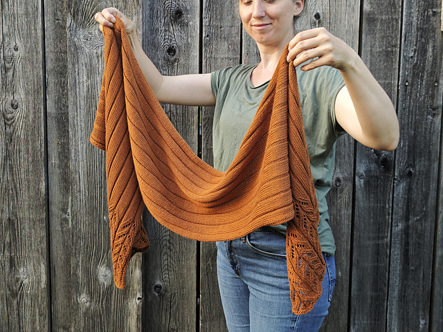 Der Florine Shawl ist ein gerader Schal, der von der Mitte aus auf beiden Seiten gearbeitet wird. Am Ende jeder Seite wird ein florales Lacemuster gestrickt und die Ränder werden in einem Icord gearbeitet.