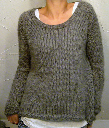 Il grande favorito ist ein Pullover mit bequemer Weite, der nahtlos von oben nach unten gestrickt wird. Zuerst wird der Halsausschnitt in Hin- und Rückreihen gestrickt, um dann zur Runde geschlossen zu werden. Anschließend wird in Runden bis zu den Unterarmen gestrickt. Dann werden die Ärmelmaschen auf Maschenraffer stillgelegt und der Körper in Runden von oben nach unten gearbeitet. Zuletzt wird der Halsausschnitt beendet.
