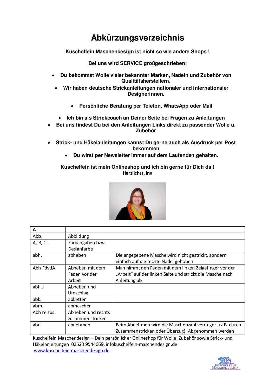 | Maschenprobe | 15 M x 26 R = 10 x 10 cm in glatt rechts gestrickt |