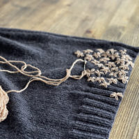 B(l)ack to Life wird nahtlos von oben nach unten gestrickt. Die Passe wird nach der so genannten Contiguous-set-in-Sleeve-Methode von Susie Myers gearbeitet. Zunächst wird in Reihen gestrickt, bis alle Maschen für den Halsausschnitt aufgenommen sind. Danach wird in Runden gearbeitet, bis die Ärmelmaschen stillgelegt werden und der Körper in Runden bis zum Bündchen hinab gestrickt wird. Im Anschluss werden die Maschen für die Ärmel wieder aufgenommen und diese bis zu den Bündchen in Runden gestrickt. Am Schluss wird das Bündchen für den Halsausschnitt angefügt, bevor der Pullover mit süßen kleinen Stick-Blüten verziert wird.