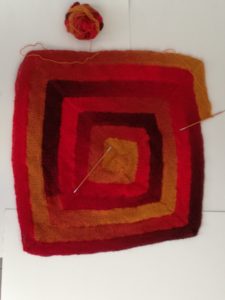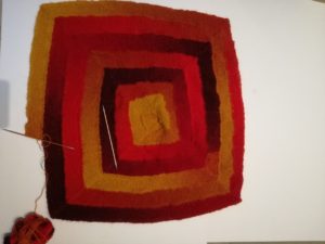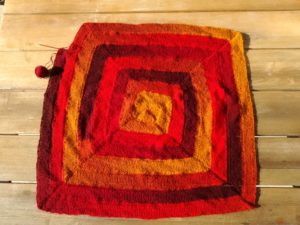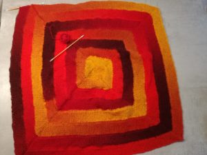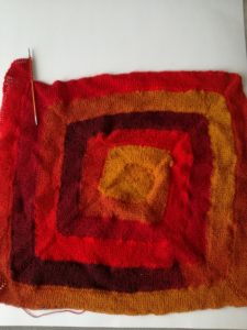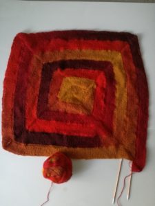 Aus Schoppelwolle Zauberball Oktoberfest stricke ich an meiner Decke. Im Quadrat aus der Mitte heraus stricke ich ich diese Farbverlaufswolle. Die Anleitung findest Du hier: https://www.ravelry.com/patterns/library/ten-stitch-blanket